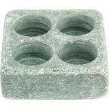 Испаритель из натурального камня с четырьмя отверстиями для ароматических жидкостей. Предназначен для использования в бане или сауне, выполнен из жаропрочного материала, устанавливается непосредственно на каменку. В него можно заливать сразу несколько видов ароматизаторов, комбинируя таким образом различные ароматы и создавая свою композицию. В качестве ароматизаторов используйте настои на водной основе или разбавленные концентраты, не содержащие эфирные масла. Испаритель имеет компактные размеры, уплощённая форма обеспечивает хорошую устойчивость.