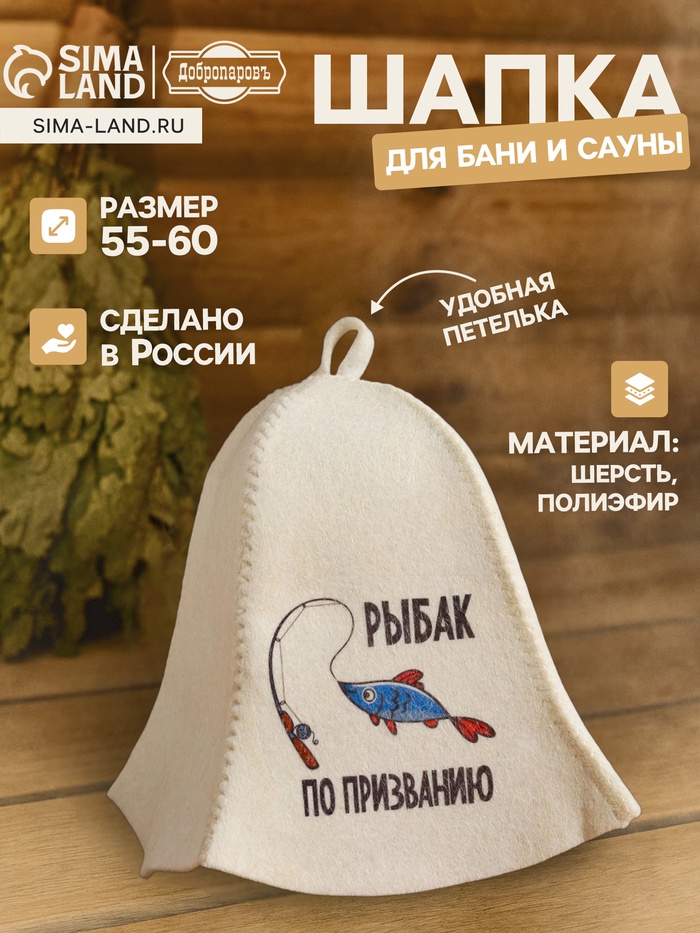 Шапка для бани "Рыбак по призванию" с принтом, белая 5312273