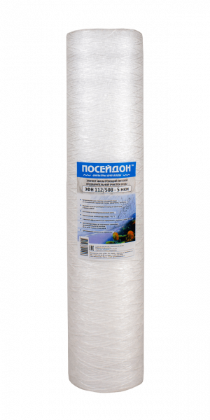 Картридж Посейдон ЭФН 112/508-10 мкм используется в магистральных фильтрах для очистки воды от механических примесей: песка, ржавчины, ила и т.д.