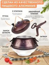 Казан Афганский - это традиционная посуда из Афганистана для быстрого и простого приготовления полезной пищи. Этот казан изготовлен из качественного пищевого алюминия и представлен в разных вариантах. Среди предложенного ассортимента можно казанок разного объема: 5л, 8л, 10л, 15л, а также 20 и 30 литров. Не составит труда подобрать чугунок на разное количество персон, главное определиться с размером и выбрать казан подходящий для Вашей семьи. Казан афганский оснащен подвижными ручками для безопасного перемещения, аварийным клапаном, который предотвращает срыв крышки и надежным замком для плотной фиксации затвора к корпусу. Афганский казан также может использоваться и на природе, и дома. Казанок идеально подходит для приготовления настоящего плова, лагмана, мяса, супа или любых других блюд, требующих высокой температуры и давления, при этом постепенный равномерный прогрев способствует сохранению витаминов. Казаны с круглым дном одновременно функциональные и красивые. Крышка съемная, имеет удобную ручку для безопасного подъема, что позволяет легко добавлять ингредиенты во время приготовления пищи. Это оригинальный продукт из Афганистана, который использовался многими поколениями и остается востребованным по сей день. Казанок подойдет для газовой, электрической, индукционной плиты, духовки, печи, открытого огня и мангала, любой варочной панели и печки. Это оригинальная продукция, на которой предусмотрено фирменное клеймо в виде ромашки. Кухонная утварь с толстыми стенками толщиной 12 мм заменит вам различный кухонный инвентарь: он может использоваться вместо чугунной сковородки, как казан, котелок, пароварка и кастрюля - скороварка. Приготовление блюд при этом оказывается невероятно простым и интуитивно понятным. За счет внутреннего давления существенно повышается температура и ускоряется процесс приготовления, тепло долго держится внутри. Прогрев внутри осуществляется поэтапно и равномерно, тушение происходит без пригорания.