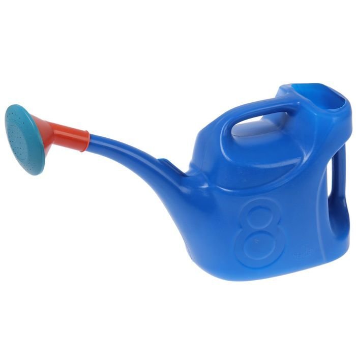 Лейка имеет две ручки, одна сверху, другая сзади, что позволяет надежно удерживать ее в руках в любом положении. Также эта модель оснащена съемным рассеивателем, что позволяет поливать растение как поверх листьев, так и под корень.