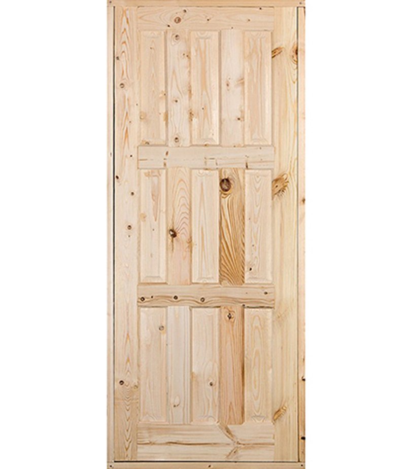 При производстве филенчатых дверей из массива сосны и ели используется сухой пиломатериал влажностью 8-12%. Размеры соответствуют стандартам. Двери состоят из обвязки (рамы) полотна толщиной 36 мм, и филенки (заполнителя) толщиной 16 мм.
