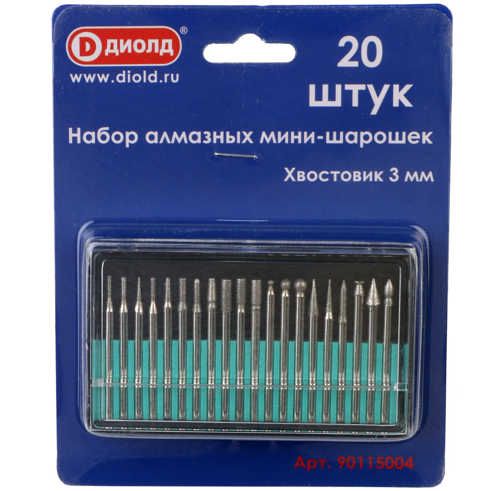 Набор Шарошек-мини алмазных, хвостовик 3мм 20шт Диолд