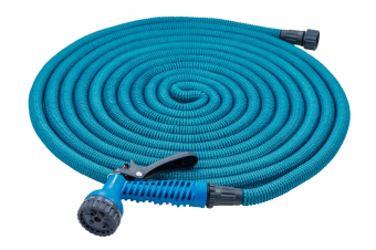 Компактный шланг для полива, который автоматически расширяется под напором воды, вдвое увеличивая свою длину. Это целая система полива и мойки, готовая к использованию. Она укомплектована новыми патрубками и пистолетом, а сам шланг легкий, компактный, простой в обращении. Он обеспечивает простоту использования и постоянный приток воды даже при сдавливании, не образуя узлов и перекручиваний. Практичный и легко сматывающийся, шланг может быть легко помещен на хранение в небольшое пространство.