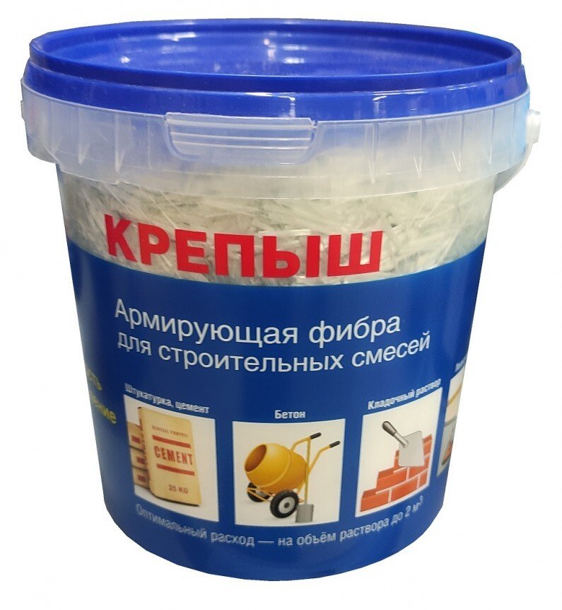 расход (на 100 г фибры «Крепыш») – до 0,2 м3 бетона или до 50 кг сухой строительной смеси