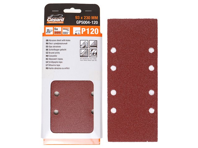 Шлифлистдля ПШМ на ворсовой подложке P 320 93х230 8 отв. 5шт Gepard