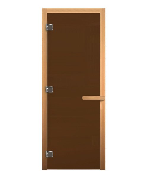 Дверь для сауны выполнена из закаленного стекла бронзового оттенка. Поставляется в комплекте с коробкой из натуральной древесины. Устойчивость к воде и высоким температурам, универсальный дизайн позволяют использовать модель не только для парилки, но и для других влажных помещений — ванной комнаты, кухни. Габариты двери 189?69 см.