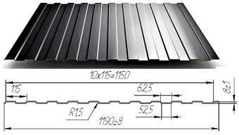 Профнастил С- 8 Оцинкованный 2.5 х 1.2 х 0.4