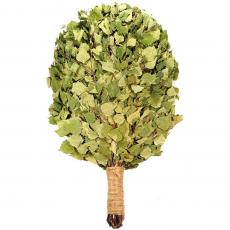 Берёзовый веник отличается гибкость и прочностью. Листья берёзы содержат дубильные вещества, провитамины и эфирные масла, которые выделяются при распаривании веника, наполняя атмосферу парной приятным, целебным ароматом. Парение берёзовым веником эффективно снимает боли в мышцах и суставах, возникающие, например, после чрезмерных физических нагрузок, а также оказывает общее успокаивающее действие на нервную систему. Особенно эффективны такие процедуры для людей с заболеваниями дыхательной системы, в том числе для курильщиков. После них дыхание становится лёгким и чистым, улучшается вентиляция бронхов, легко отходит мокрота. Листья берёзы обладают также антисептическими и ранозаживляющими свойствами, которые помогают бороться с угревой сыпью и гнойничками, что помогает людям с проблемной и жирной кожей.