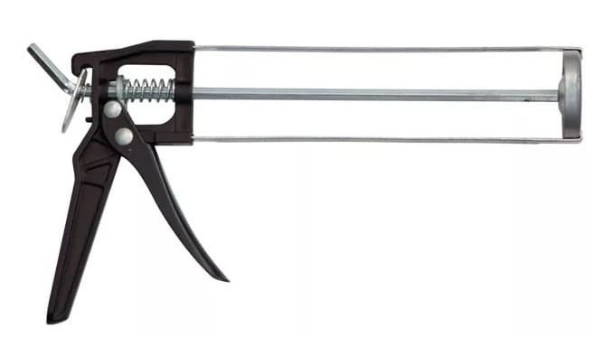 Пистолет для герметика скелетный Caulker BLAST 591001 - скелетный пистолет эконом-класса. Отличается от своих конкурентов наличием дополнительных рёбер жесткости корпуса и ручки из ударопрочного пластика, делающего её более эластичной. Благодаря этому слабые места менее подвержены излому. Толщина скелетной части 1,8 мм. Шестигранный шток. Толщина штока 6,9 мм. Материал сталь/твёрдый пластик. Для герметиков в картридже.