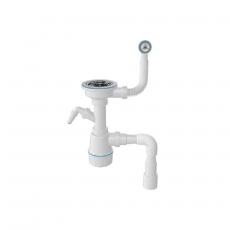 Сифон для керамогранитной мойки с выпуском 3 1/2" с круглым переливом, болшая колба, латунный винт 45 мм, выход гибкая труба 1 1/2"- Ø40/50