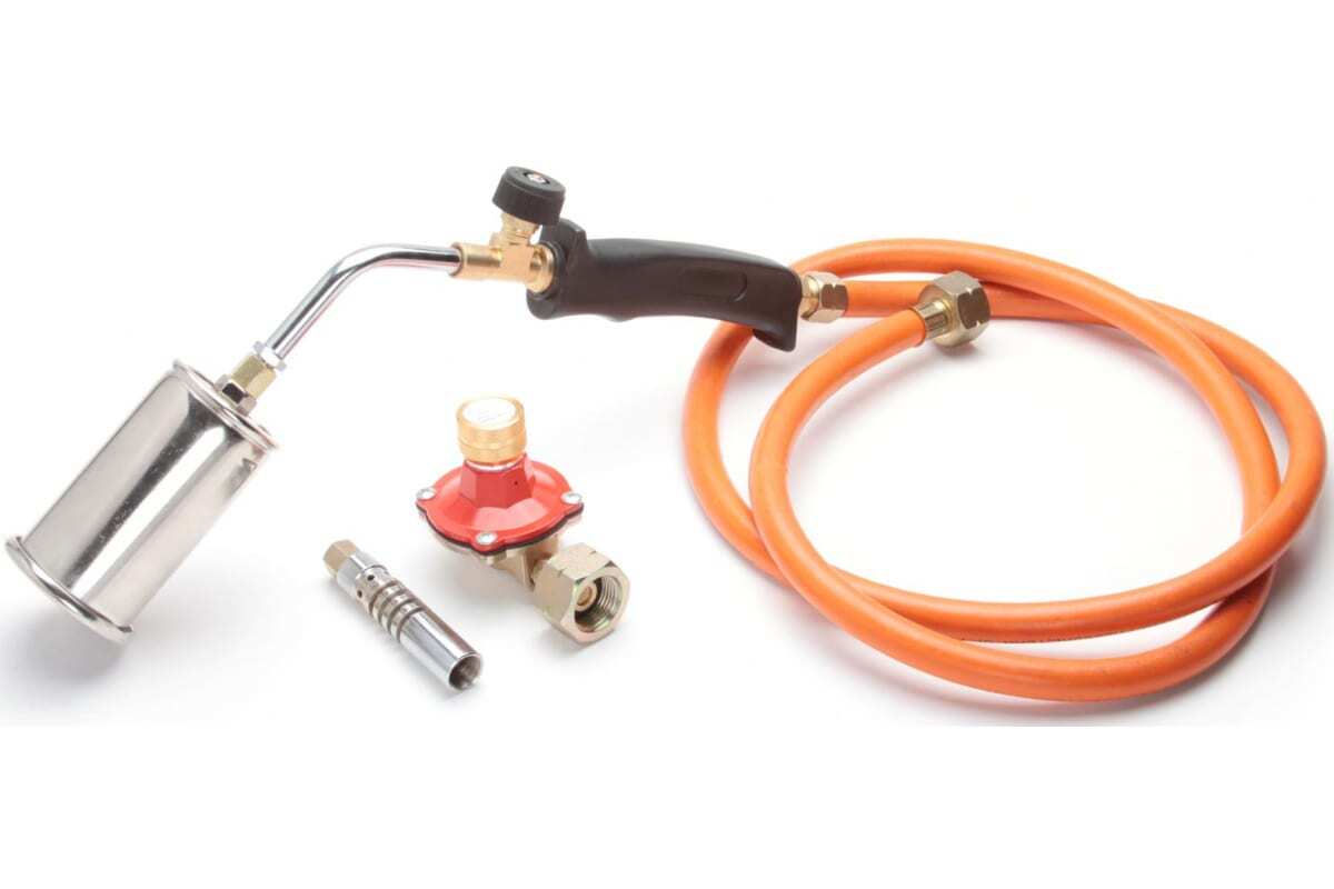 Набор для кровельных работ Tulips tools IP13-120 состоит из пропановой горелки длиной 650мм, оснащенной соплом диаметром 60мм, армированного гибкого шланга длиной 300мм и гайки-штуцера с левой резьбой 3/4" для присоединения к газовому баллону.