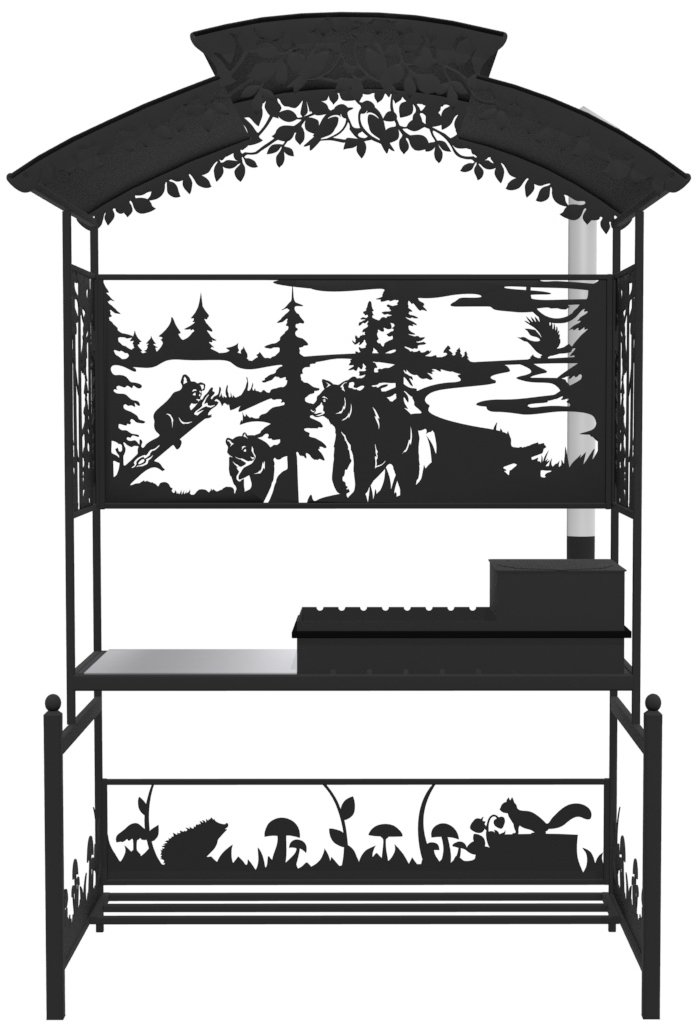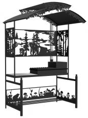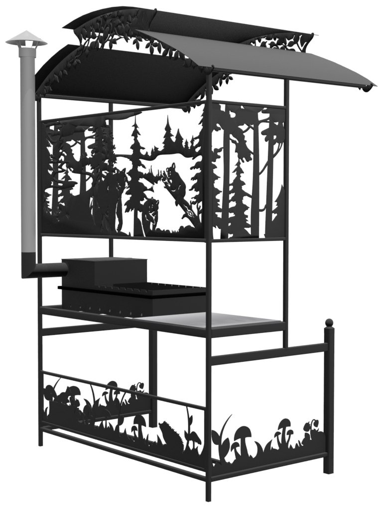 ангал Три медведя Казан - металлический разборный мангал с крышей, с резными рисунками с медведями в лесу. Новинка 2019 года!