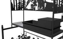Каркас и все художественные элементы покрашены молотковой краской, имеющую интересную структуру, получаемую при ручной