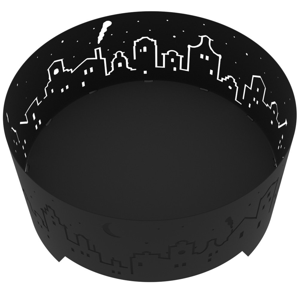 Круглое кострище "Ночной город" будет отлично смотреться на дачном участке установленное на траву или на подготовленную поверхность.