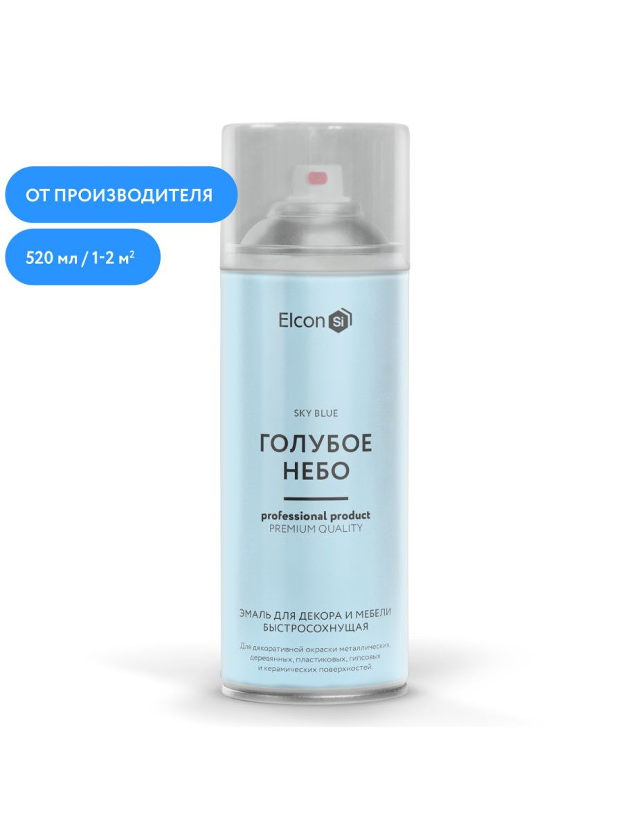 Высококачественная быстросохнущая эмаль предназначена для декоративной окраски металлических, деревянных, пластиковых, гипсовых и керамических поверхностей. Цветовая линейка, состоящая из 20 уникальных оттенков, была разработана совместно с дизайнерским бюро НН ПРЕСС и соответствуют самым актуальным трендам индустрии. Такие цвета подойдут как для покраски предметов хобби и творчества, так и для реставрации предметов быта. Внешний вид баллонов максимально приближен к цвету эмали, находящейся внутри. Аэрозольная краска Elcon не выделяет вредных веществ после высыхания, обладает высокой насыщенностью цвета и отличной адгезией к различным поверхностям, легко наносится на самые труднодоступные места. Время высыхания на отлип составляет до 15 минут. Расход на 1 слой составляет 520 мл на площадь от 1 до 2 м2. Указания к применению 1. Окрашиваемые поверхности предварительно очистить, высушить, обезжирить, загрунтовать и отшлифовать. Для обезжиривания рекомендуется использовать универсальный обезжириватель Elcon, для грунтования рекомендуется использовать акриловый грунт Elcon. 2. Во избежание попадания следов аэрозоля рекомендуется защищать поверхности, не подлежащие окраске. 3. Для достижения наилучших результатов эмаль следует наносить при температуре не ниже плюс 10 градусов. 4. Перед использованием баллон необходимо встряхивать от 2 до 3 минут. 5. Эмаль наносить, избегая перелива, с расстояния от 25 до 30 см в 2 или 3 слоя с промежуточной сушкой 10 минут. Время сушки на отлип при температуре плюс 20 градусов составляет от 15 до 20 минут. Время полного высыхания при температуре плюс 20 градусов составляет 2 часа. 6. По окончании работы во избежание засорения головки распылителя перевернуть баллон вверх дном и распылять до тех пор, пока не перестанет поступать эмаль. Аэрозольная краска Elcon применяется для окрашивания предметов декора, мебели, изделий из металла, деревянных поверхностей, изделий из пластика, поверхностей из гипса, стеклянных поверхностей и керамических изделий.