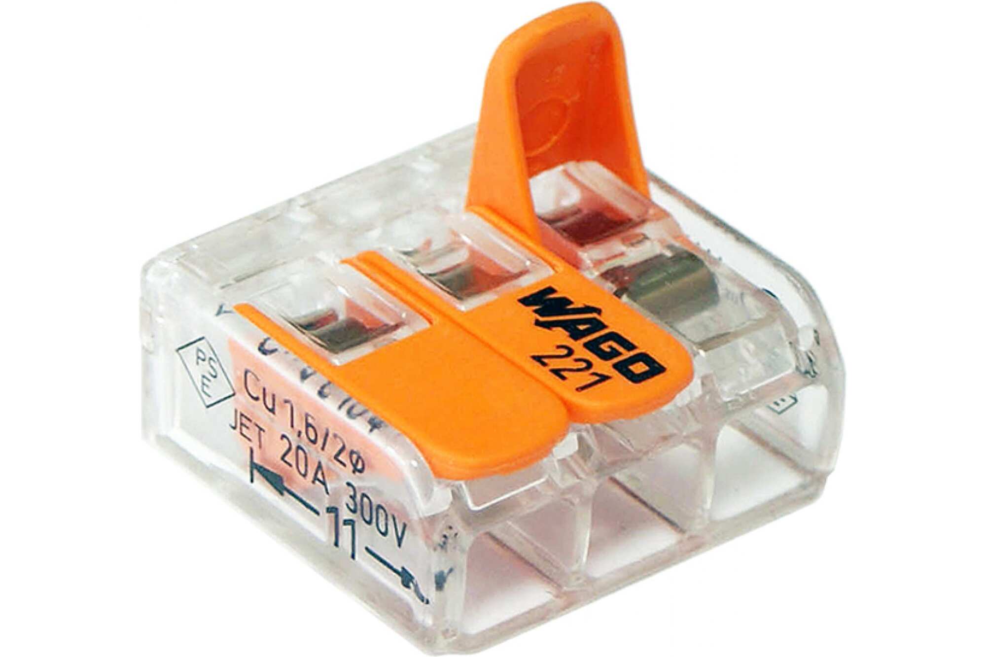 Зажим 3*(0.2-4.0) WAGO 221-413 прозр. 2шт