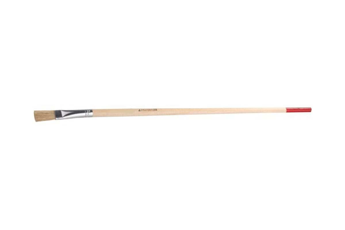 Тонкая кисть STAYER UNIVERSAL-STANDART 0124-06 - малярный инструмент размером 11 мм, который используется для нанесения всех видов лакокрасочных материалов на поверхность. Небольшие габариты кисочки позволяют обрабатывать труднодоступные места или выполнять детальные рисунки. Натуральная щетина инструмента отлично впитывает и равномерно распределяет лак, краску, олифу по плоскости.