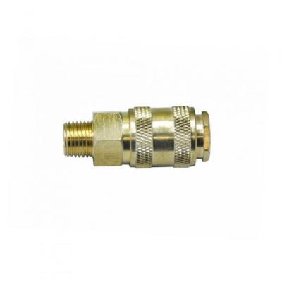 Соединение разъемное быстросъемное мама х G3/8F, латунь ECO AB-F/FT38 имеет автоматический клапан, перекрывающий канал и предназначено для установки на выходном конце различных элементов пневмосистемы для создания автоматических прерывателей подачи воздуха. Может быть использовано вместо байонетных гаек на некоторых отечественных компрессорах. Латунный корпус исключает возможность появления коррозии.