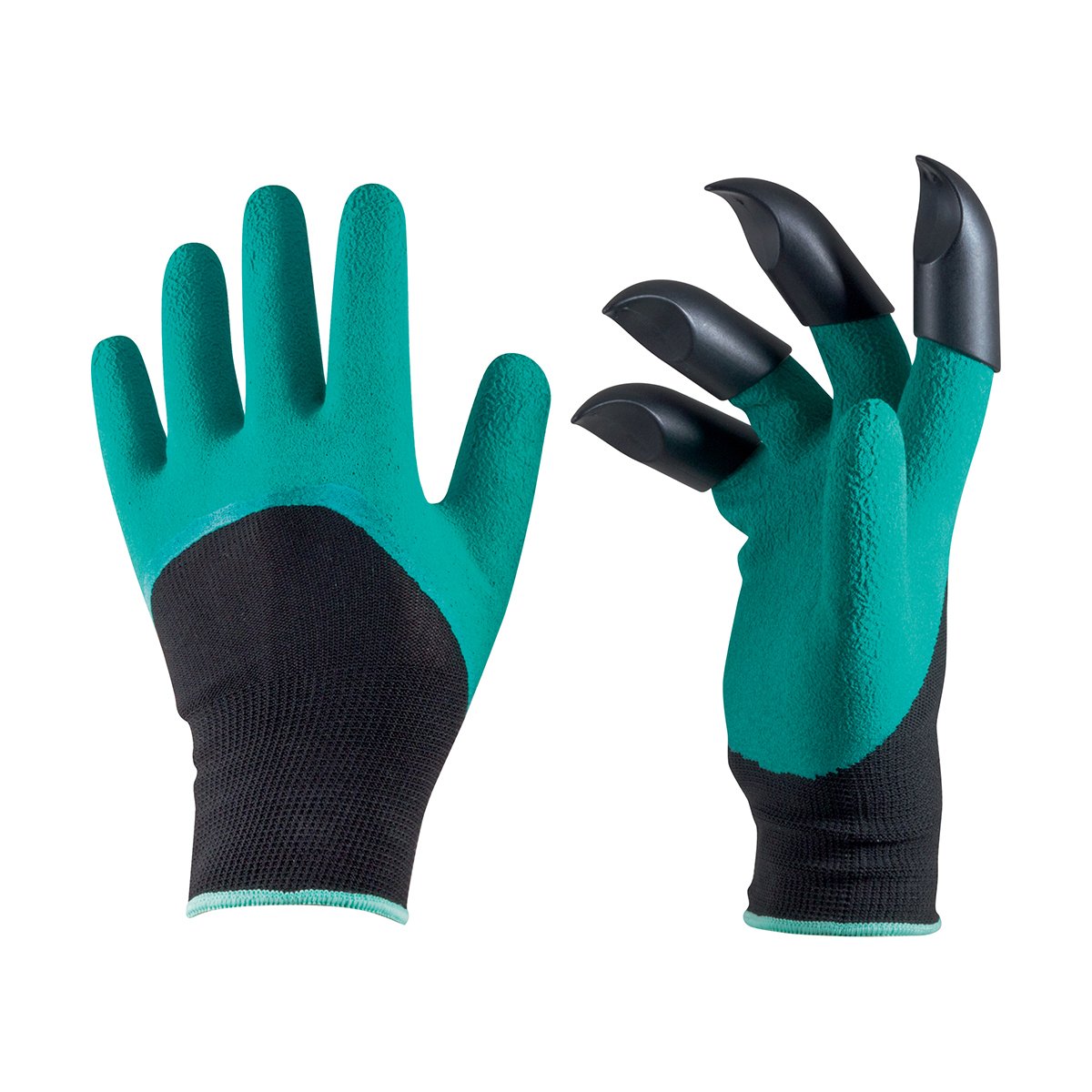Износостойкие перчатки выполнены из эластичного полиэстера, за счет которого обеспечивается высокая точность производимых работ. Надежный захват поверхностей во время работ осуществляется благодаря гладкому покрытию из "морщинистого" латекса. На правой перчатке есть 4 пластиковых "когтя".