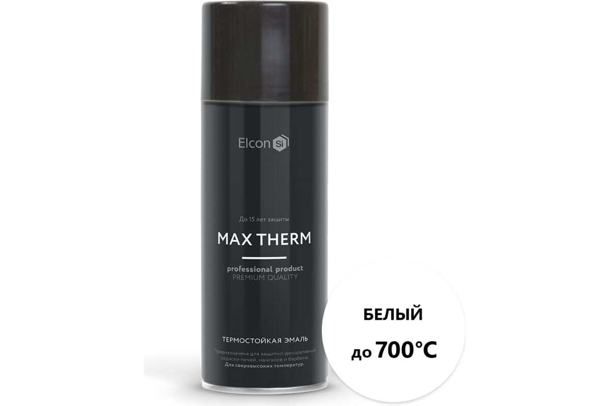 Термостойкая краска для металла, печей, мангалов, радиаторов, дымоходов, суппортов Elcon Max Therm белая, аэрозоль 520 мл, 700 градусов 00-00004077 предназначена для антикоррозионной защиты металлоконструкций, оборудования, печей для саун, дымовых труб, выхлопных систем автомобилей, деталей двигателей, емкостного оборудования, подвергающихся в процессе эксплуатации воздействию температур от -60 °С до +700 °С, а также для окраски минеральных поверхностей, длительно эксплуатируемых в условиях умеренного климата.