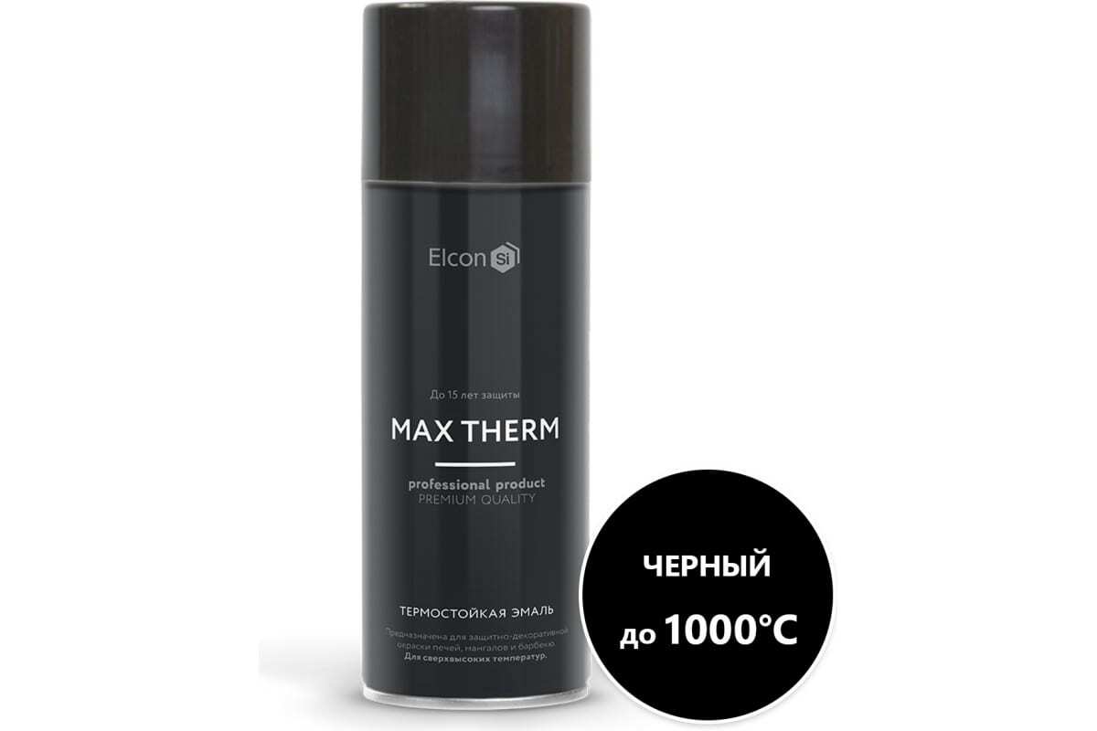 Термостойкая краска для металла, печей, мангалов, радиаторов, дымоходов, суппортов Elcon Max Therm черная, 1000 градусов, аэрозоль 520 мл 00-00002957 предназначена для антикоррозионной защиты металлоконструкций, оборудования, печей для саун, дымовых труб, выхлопных систем автомобилей, деталей двигателей, емкостного оборудования, подвергающихся в процессе эксплуатации воздействию температур от -60 °С до +1000 °С*, а также для окраски минеральных поверхностей, длительно эксплуатируемых в условиях умеренного климата.