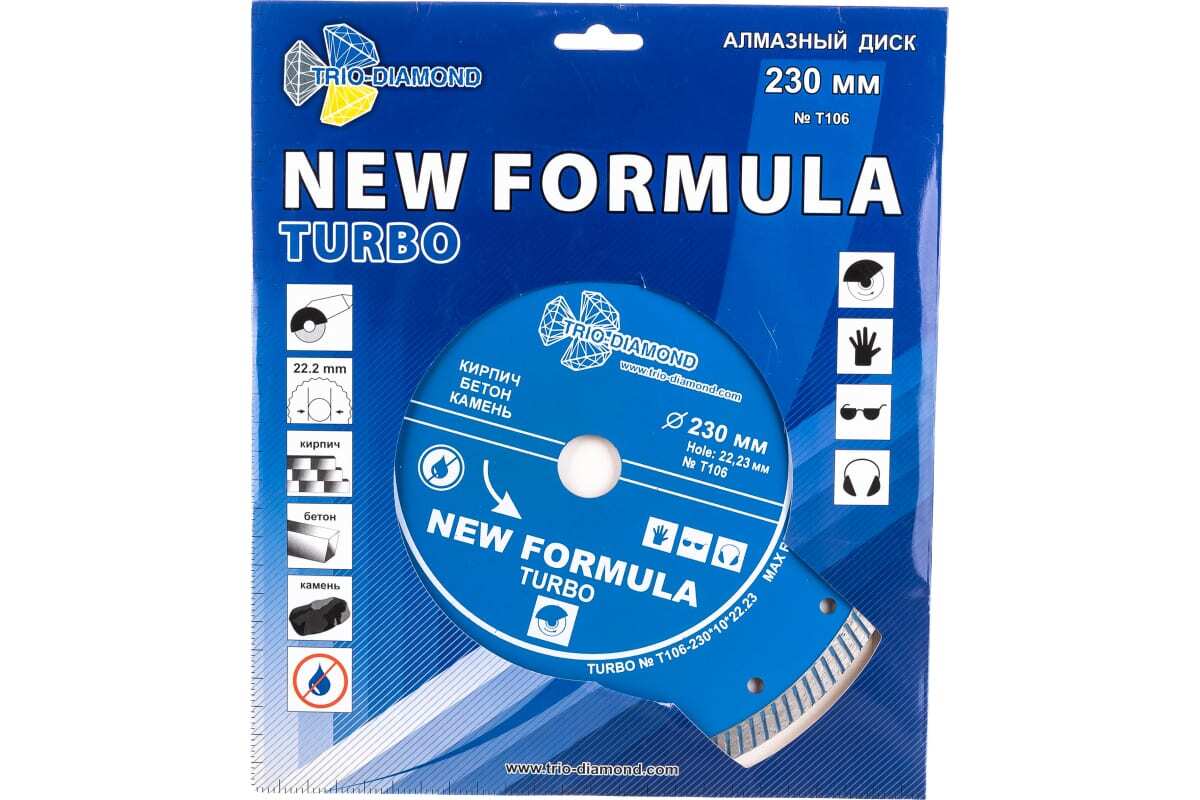 Диск алмазный отрезной Турбо New Formula (230х22.23 мм) TRIO-DIAMOND T106
