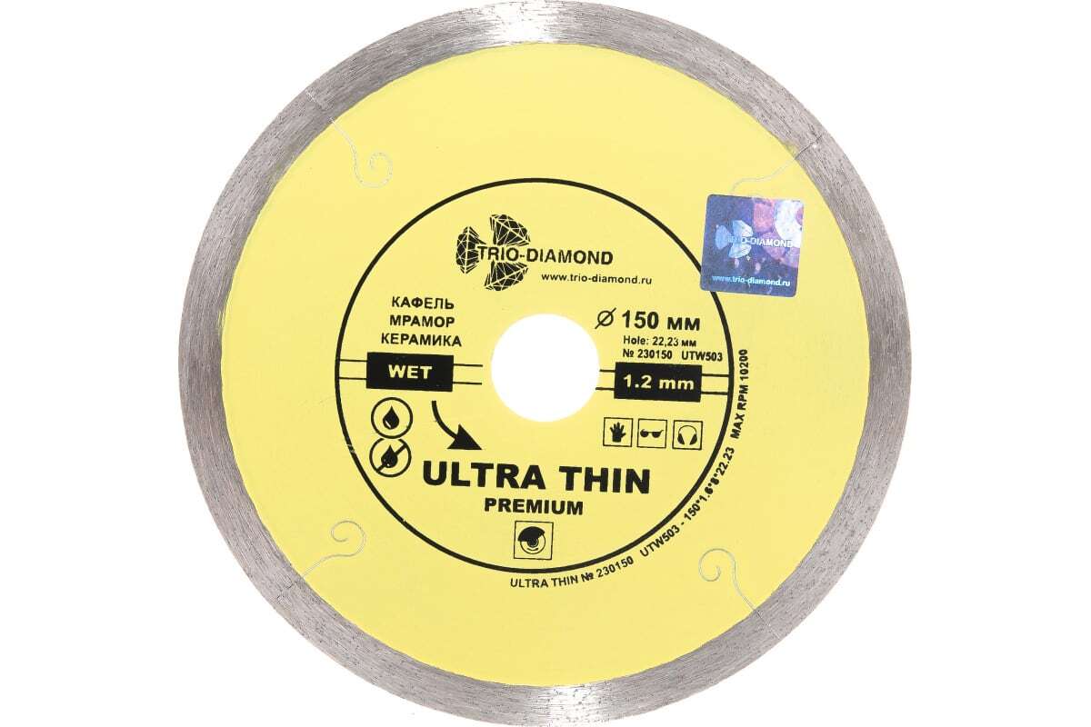 Диск алмазный отрезной Сплошной Ультратонкий Ultra Thin hot press (150х22.23 мм) TRIO-DIAMOND UTW503