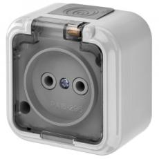 Розетка ОП Bylectrica Пралеска Аква 1-м б/з серый прозрачная крышка IP54 РА16-296 (02)