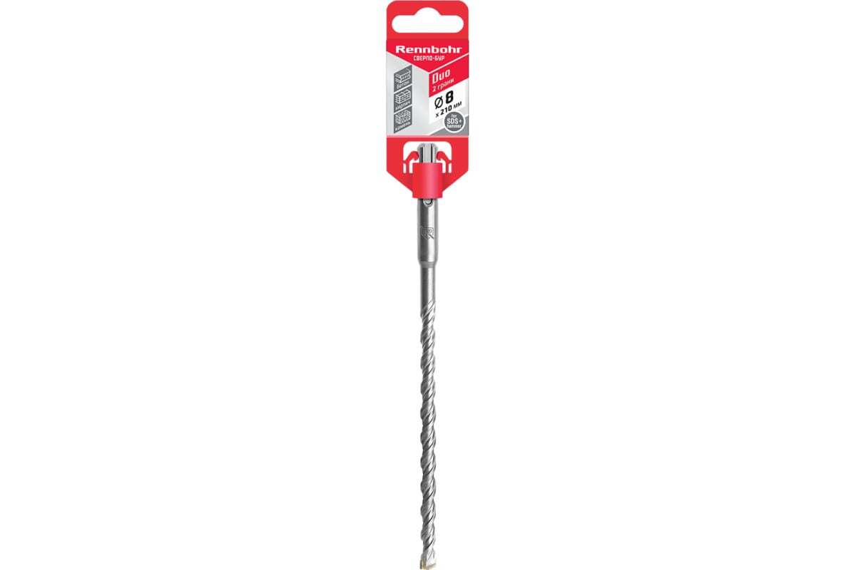Сверло-бур по бетону Duo (8x210 мм; SDS-PLUS) RENNBOHR 680821 предназначено для перфораторов с системой крепления SDS-PLUS. Применяется для бурения сквозных/глухих отверстий в бетоне, камне, кирпиче.