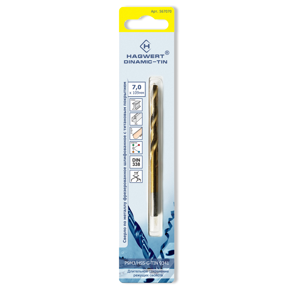 Сверло по металлу 7.0*109 Dinamic-TIN Hagwert
