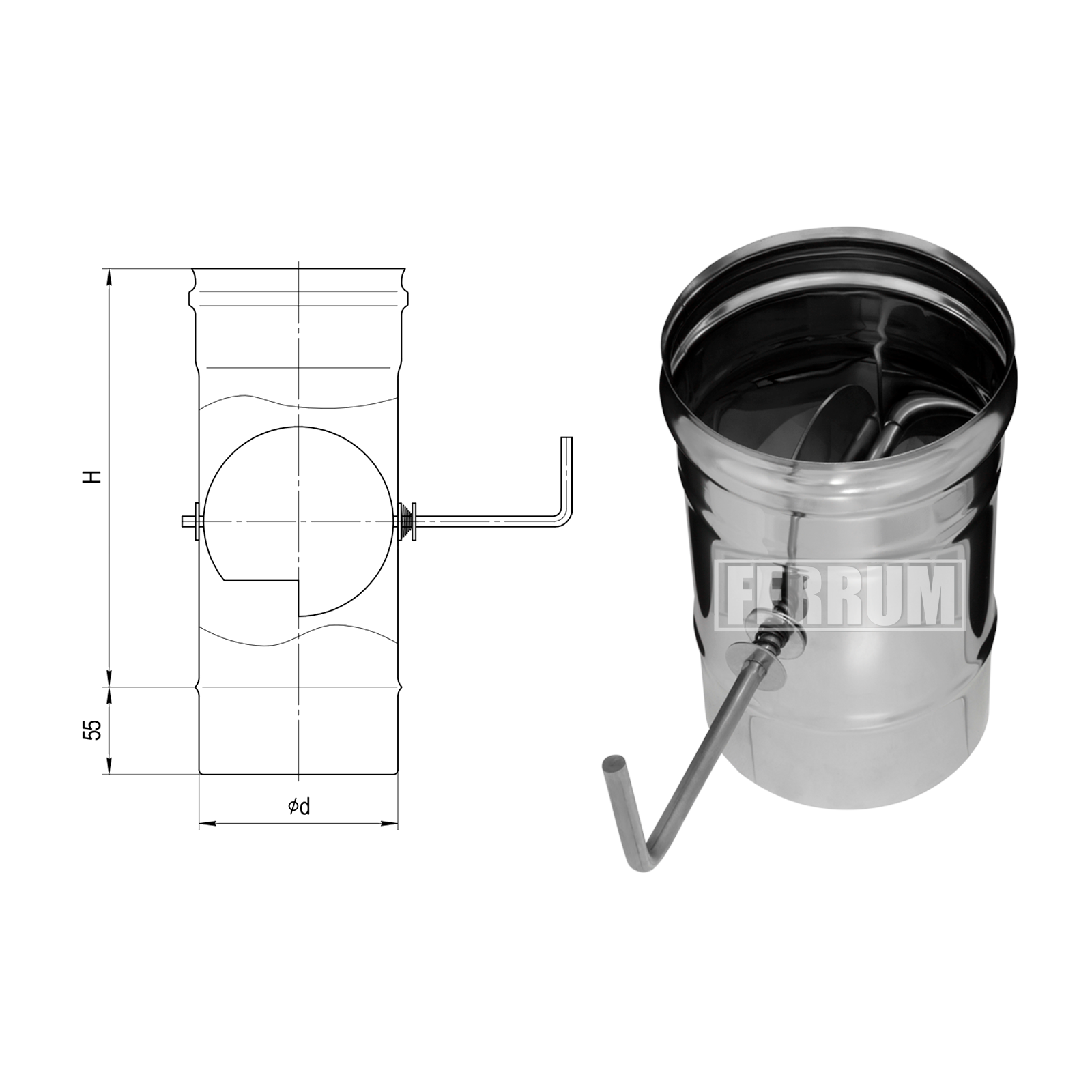 Шибер поворотный нерж. 150 (430/0.8мм) Ferrum//23