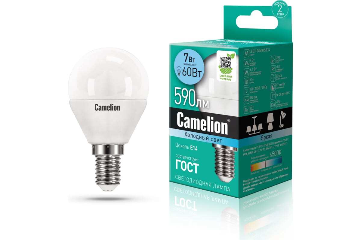Технические характеристики Camelion LED7-G45/845/E14 7Вт 220В 12071