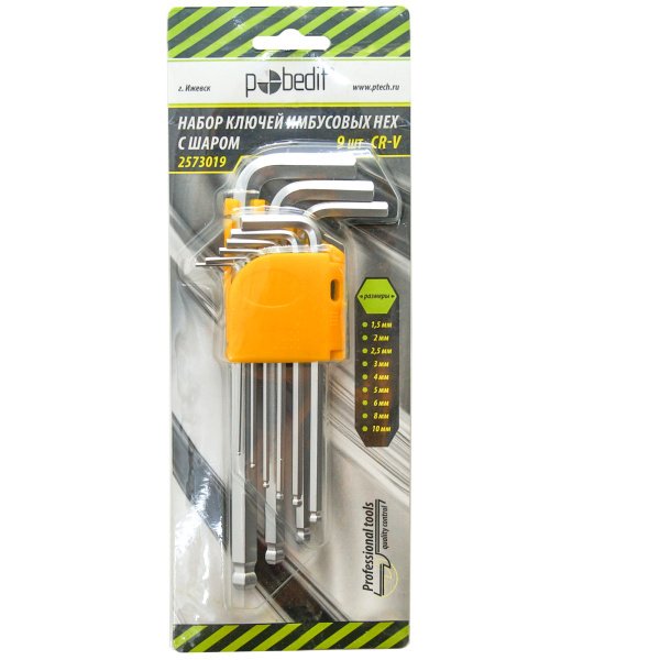 Ключи имбусовые Hex 9шт с шариком CR-V Pobedit 2573019