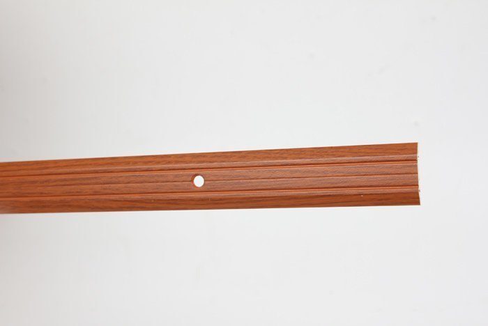 Данная модель предназначена для скрытия стыков двух одноуровневых напольных покрытий, изготовленных из различных материалов. Пороги с отверстиями для монтажа поставляются в индивидуальной упаковке с саморезами (d 3,0 мм х 25,0 мм) и дюбелями.