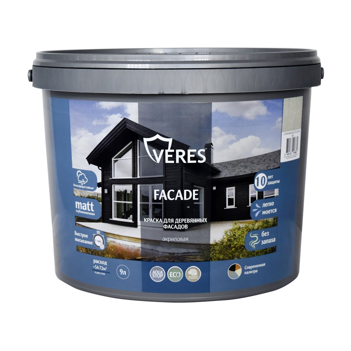 Краска для деревянных фасадов Veres Facade, акриловая, идеальна для зданий - памятников архитектуры. Обладает превосходной адгезией (сцеплением) к штукатурке, шпатлевке, бетону, кирпичу, гипсоволокно, гипсокартону, фанере, дереву, ДСП, ДВП, МДФ, загрунтованному металлу. Выдерживает влажную уборку с применением неабразивных моющих средств. Содержит антисептик.