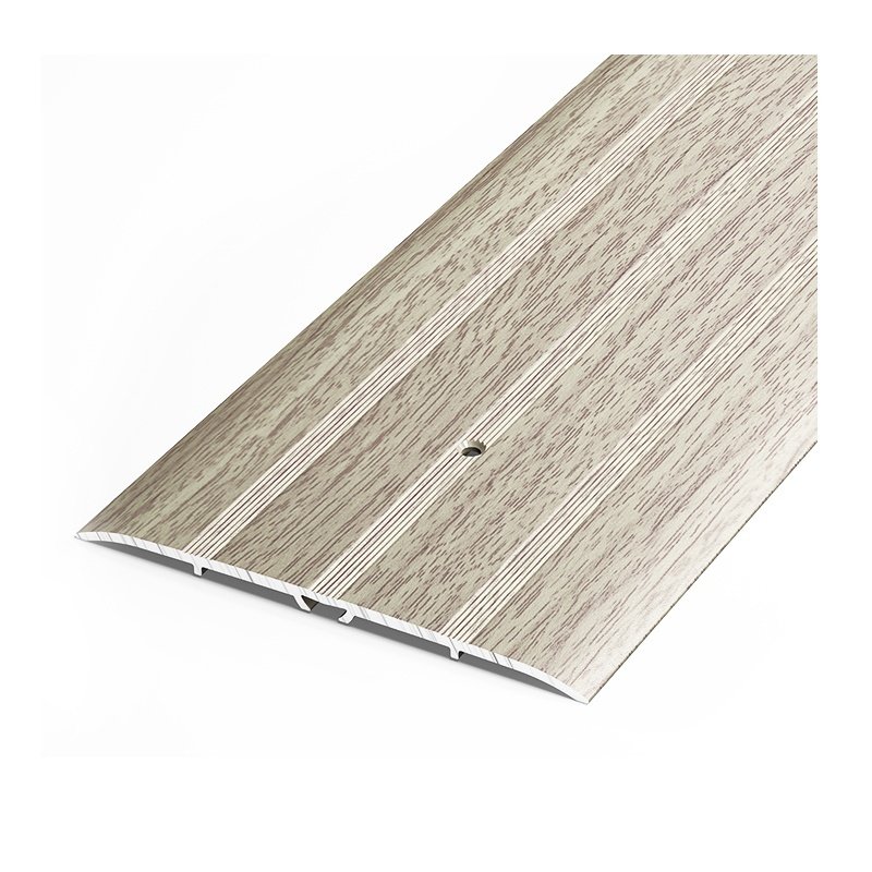 Данная модель предназначена для скрытия стыков двух одноуровневых напольных покрытий, изготовленных из различных материалов. Пороги с отверстиями для монтажа поставляются в индивидуальной упаковке с саморезами и дюбелями.