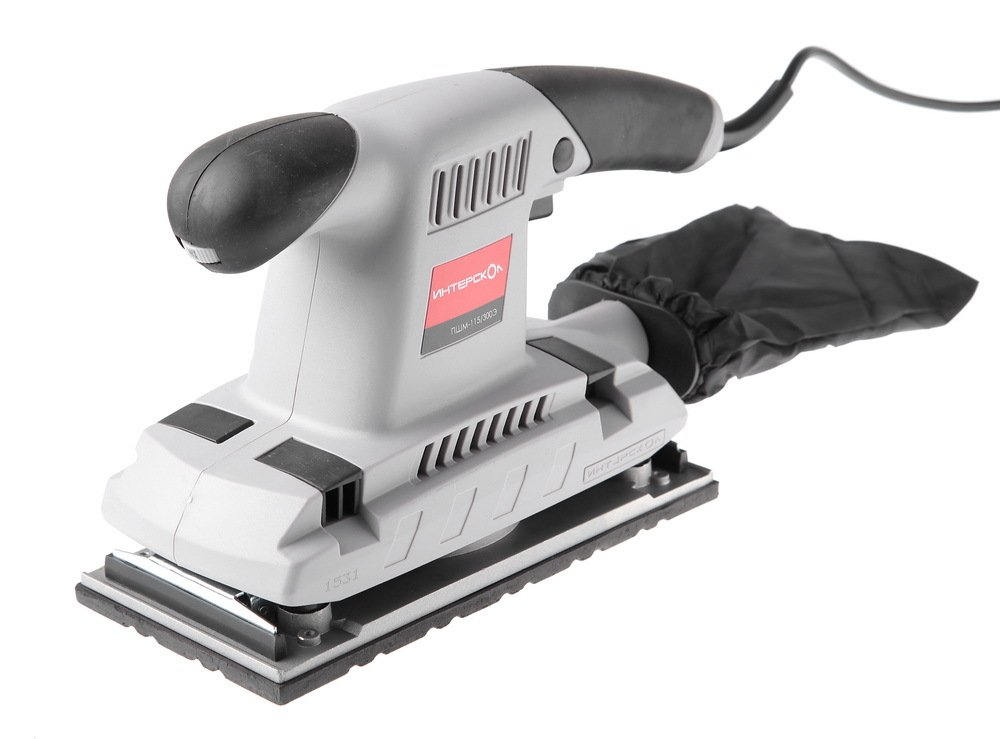Плоскошлифовальная машина Интерскол ПШМ-115/300Э состоит из привода, размещенного в пластмассовом корпусе, в котором вертикально установлен электродвигатель. Ось вращения электродвигателя расположена по нормали к обрабатываемой поверхности. При вращении двигателя платформа и балансир-эксцентрик уравновешивают колебания друг друга, при этом платформа совершает быстрые круговые движения, которые и обеспечивают шлифование. Работа шлифмашины осуществляется с помощью абразивного листа на бумажной или тканевой основе, закрепленного на платформе.