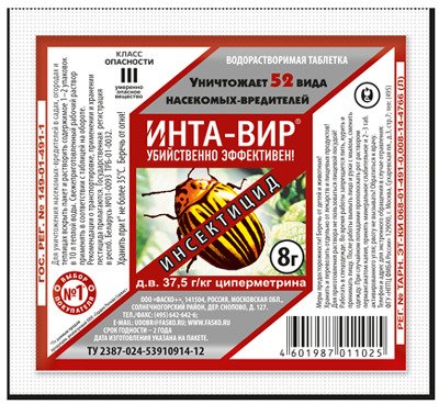 Инта-вир – является универсальным средством, которое позволяет значительно сократить затраты труда на обработку растений, так как комплексно борется с различными вредителями одновременно.