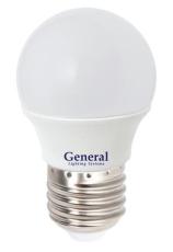 Лампа светодиодная LED General Е27 7Вт G45 шар 2700K теплый свет // Эквивалент 70Вт 639700