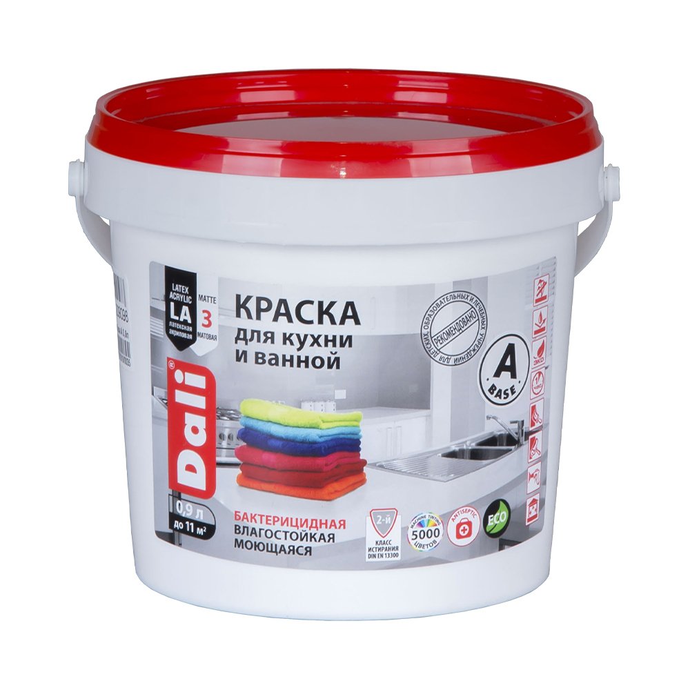 Краска латексная биозащитная влагостойкая для кухни и ванной Dali.