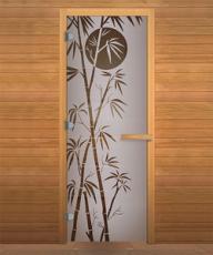 Дверь стеклянная Сатин матовая Бамбук 1900*700 8мм, 3 петли 710 Осина Лев.