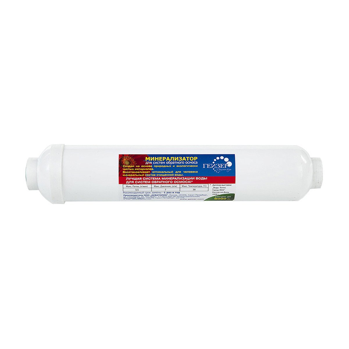 Минерализатор B (RO) предназначен для обогащения полезными минеральными солями (магния и кальция) и микроэлементами воды, очищенной системой обратного осмоса. Минерализатор не подлежит восстановлению, после окончания ресурса заменяется на новый.