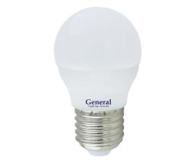Лампа светодиодная LED General Е27 10Вт G45 шар 2700K тёплый свет // Эквивалент 90Вт 683600