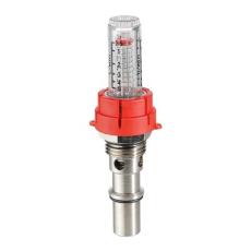 (VT.AC674.V) Настроечный клапан с расходомером (ротаметром) для коллекторных блоков VTc.589. Предназначен для индикации и регулировки расхода теплоносителя в присоединенных контурах напольного или радиаторного отопления при наладке (гидравлической балансировке) системы. Шкала прозрачной колбы отградуирована в диапазоне расхода от 0,5 до 5,0 л/мин. Текущее значение расхода определяется по положению индикаторной шайбы. Расходомер можно разобрать и прочистить при загрязнении.