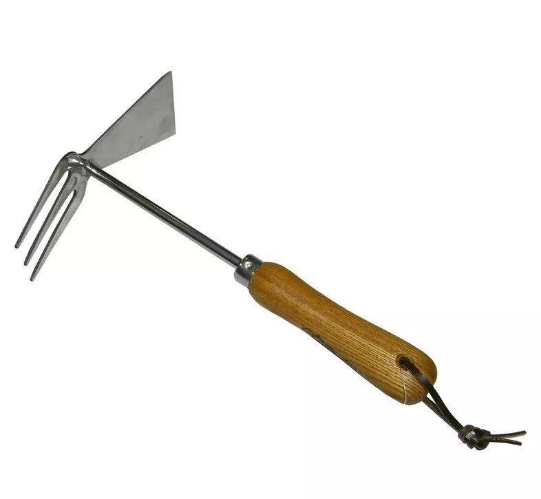Тяпка садовая с рыхлителем двухсторонняя из нержавеющей стали с деревянным черенком SKRAB 28396 позволяет решить широкий спектр задач в саду или огороде. Лезвие инструмента изготовлено из нержавеющей стали и закалено, имеет форму два в одном: мини тяпка и рыхлитель - культиватор. Удобная деревянная ручка покрыта лаком для защиты от влаги. Острием мини тяпки очень удобно проделывать бороздки для посадки семян, удалять (срезать) сорняки. Тяпка 28396 SKRAB используется для окучивания посадок, рыхления земли (аэрации). Благодаря оптимальным размерам и небольшому весу мини тяпкой удобно работать одной рукой, она предназначена для качественного выполнения небольших объемов работ.