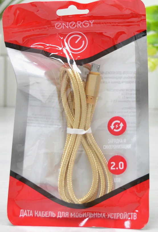 Кабель USB-MicroUSB 2А 1.0м Золотистый Energy ET-28