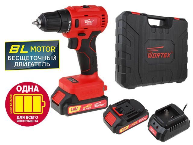 Дрель-шуруповерт аккумуляторная WORTEX BD 2025 DLi ALL1 18В 2хАКБ 2.0 Ач Li-Ion бесщеточный 2 скор 50Нм 0.87кг
