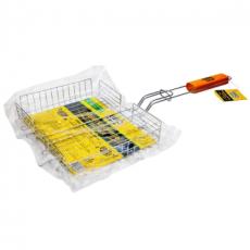 Рукоятка изделия оснащена деревянной вставкой и фиксирующей скобой, которая зажимает створки решетки.