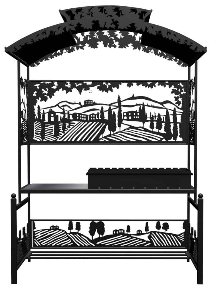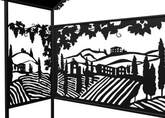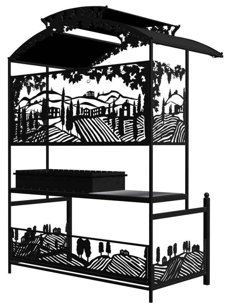 Мангал Тоскана - это металлический разборный мангал с крышей, с резными рисунками итальянских виноградников. Один из самых красивых и популярных мангалов, предлагаемых нашим производством.